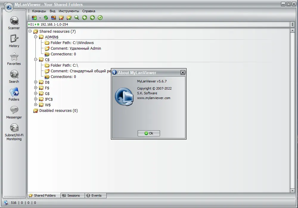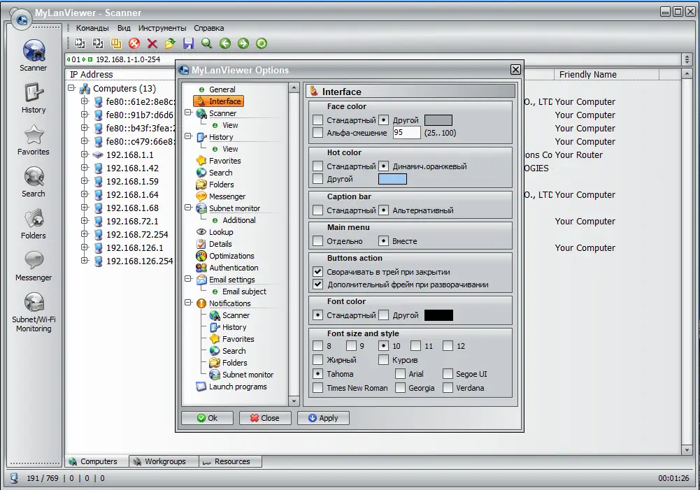 Работа с MyLanViewer
