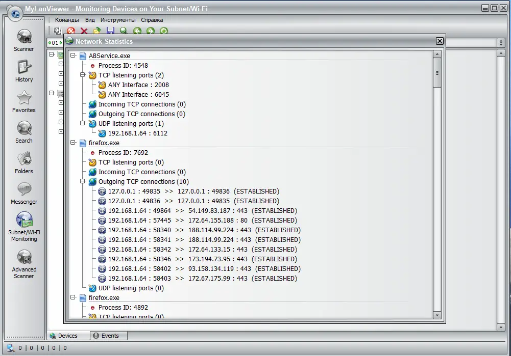 Программа предоставляет детализированный network full обзор, позволяя видеть не только активные устройства, но и их сетевую активность в реальном времени.