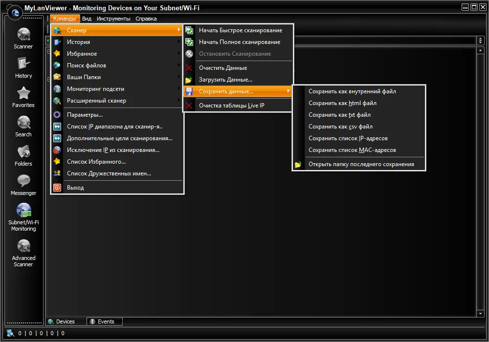 Программа сохраняет историю всех обнаруженных устройств, что позволяет отслеживать изменения в сети с течением времени.