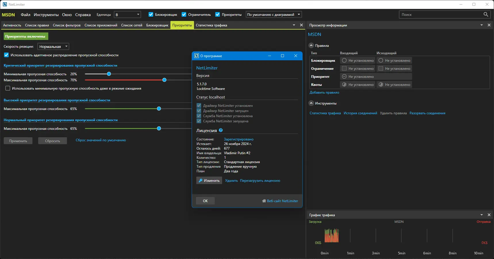 NetLimiter — это мощное программное обеспечение, предназначенное для управления сетевыми соединениями и распределения пропускной способности между приложениями. Каждое приложение, использующее интернет, отображается в реальном времени с указанием текущей скорости загрузки и выгрузки данных. Пользователь может вручную задать лимиты на трафик, заблокировать доступ в сеть или назначить приоритет для критически важных задач, таких как видеоконференции или онлайн-игры.