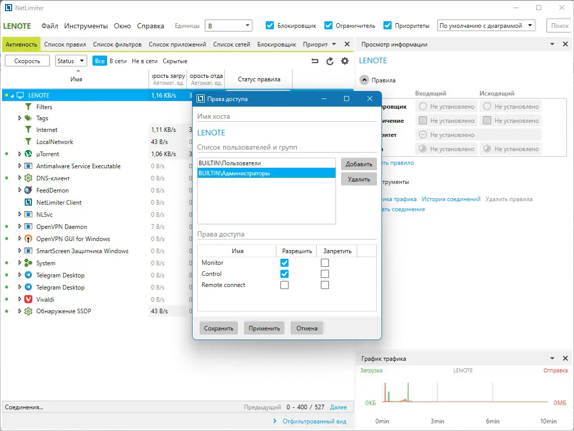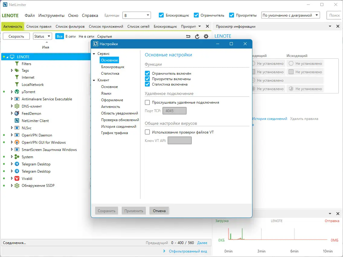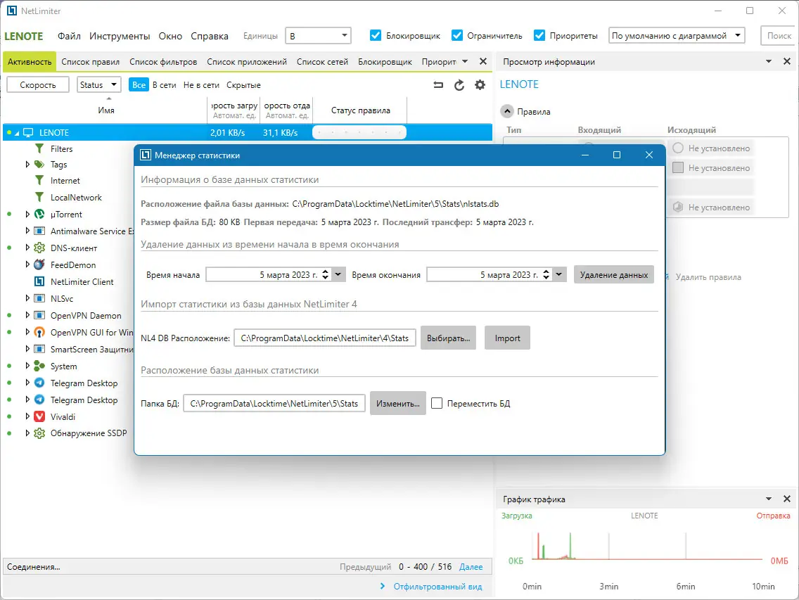 Работа с NetLimiter