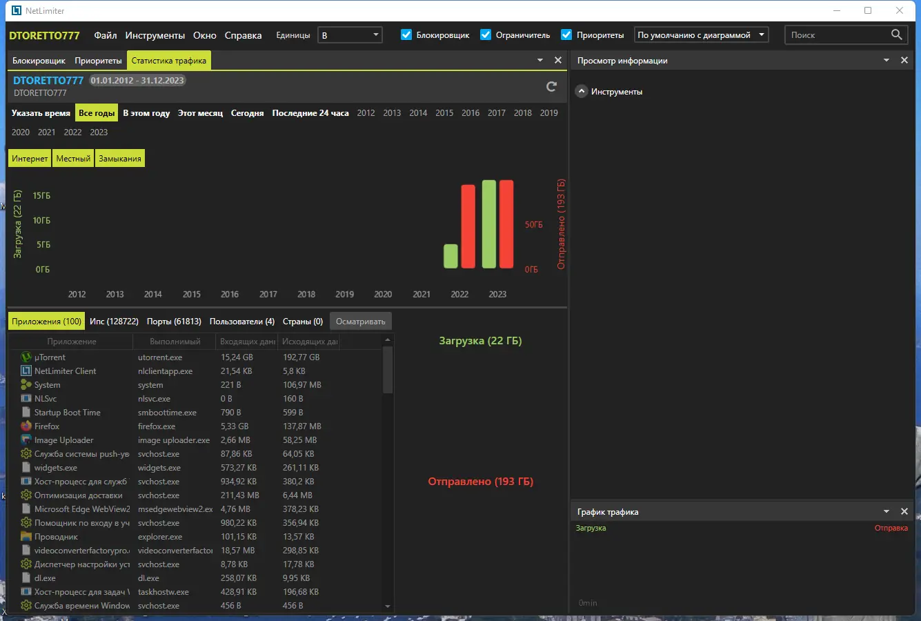 - Подробная статистика и визуализация трафика
