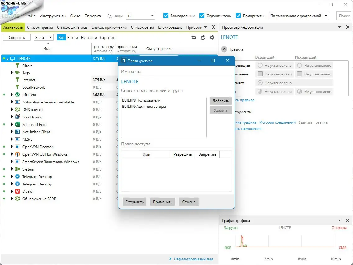 NetLimiter — это инструмент для детального контроля сетевого трафика на персональном компьютере, позволяющий отслеживать активность приложений в реальном времени и управлять их интернет-соединениями. Программа предоставляет возможность ограничивать скорость загрузки и отдачи для отдельных процессов, настраивать приоритеты и блокировать нежелательный доступ к сети. Благодаря гибким настройкам и наглядной статистике, пользователь получает полный контроль над использованием интернет-ресурсов.