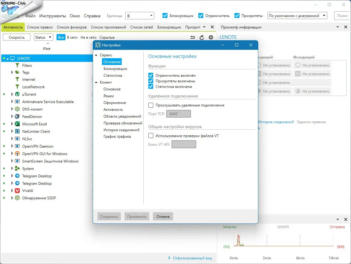 Описание NetLimiter