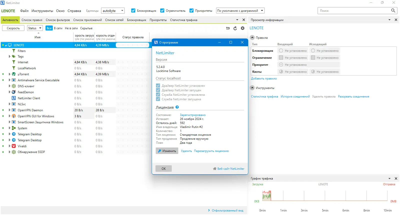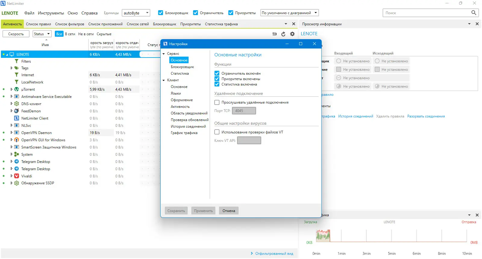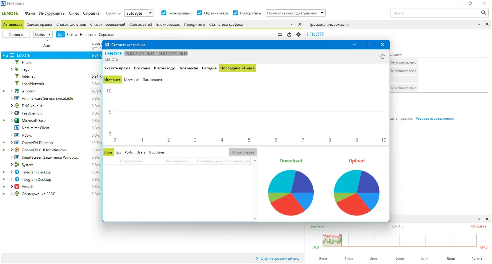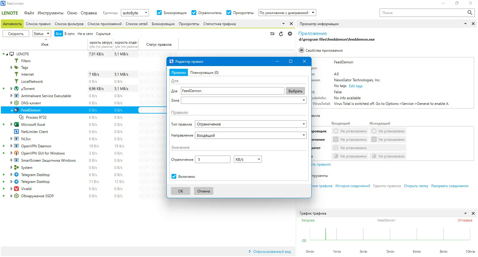 NetLimiter позволяет не просто наблюдать за сетевой активностью, но и активно управлять ею, предотвращая перегрузку канала и обеспечивая стабильную работу в интернете.
