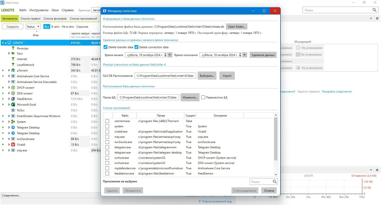Работа с NetLimiter