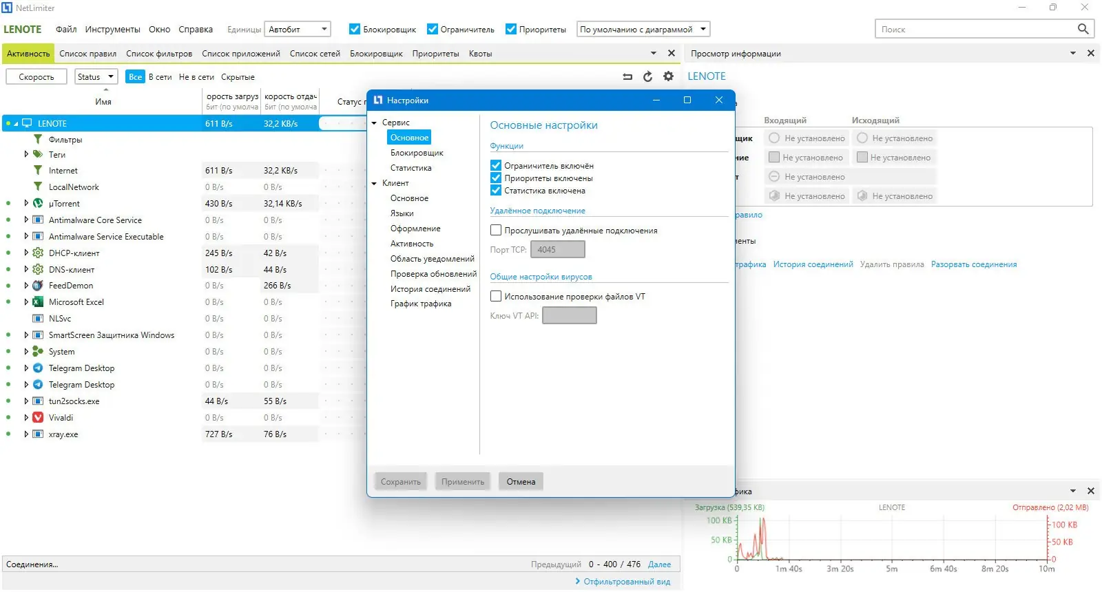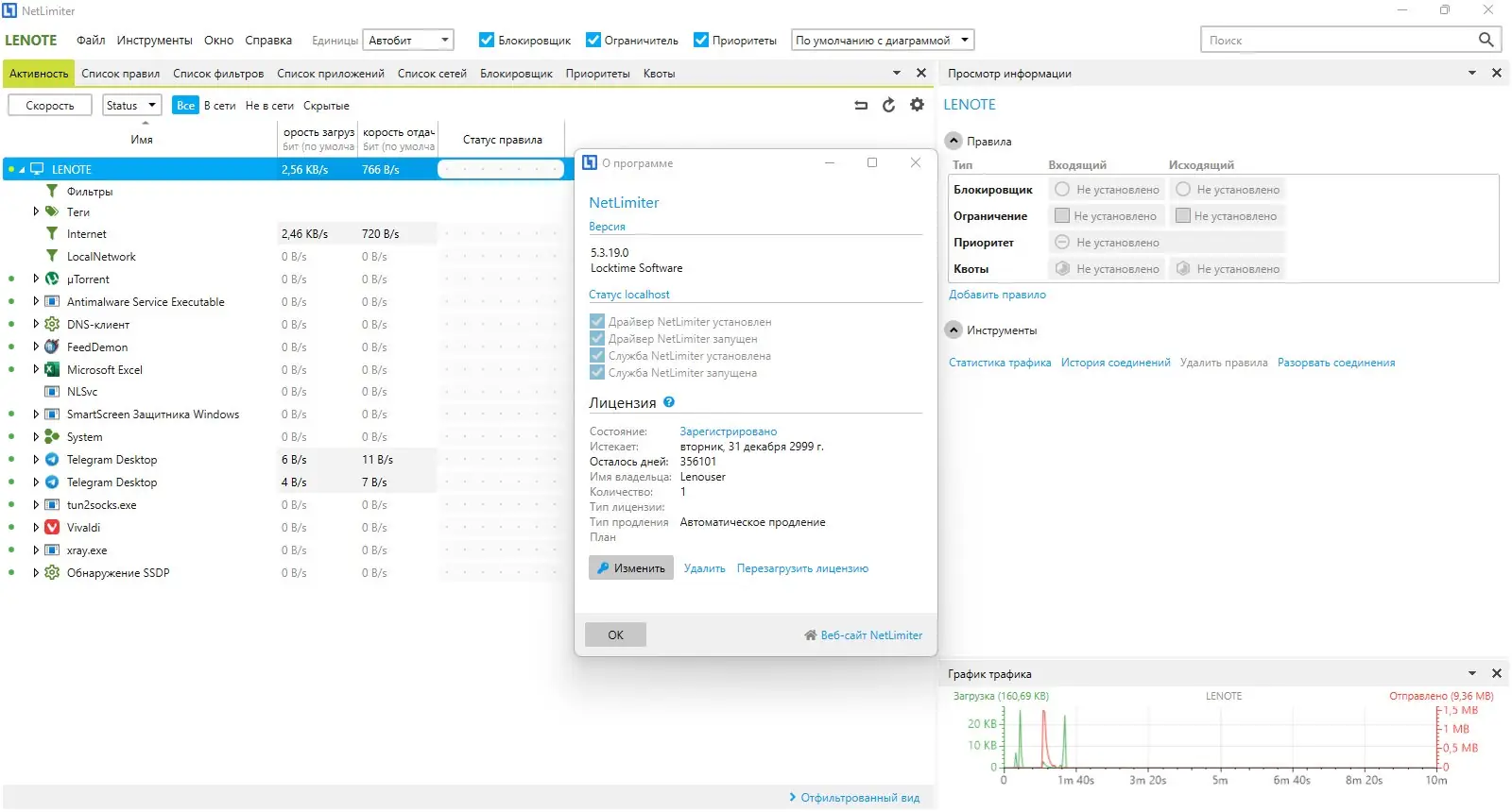NetLimiter представляет собой инструмент для точного контроля сетевого трафика, ориентированный на пользователей, которым важно распределять ресурсы интернет-канала между приложениями. Программа отслеживает каждое сетевое соединение, отображая данные о загрузке и выгрузке информации в удобном интерфейсе. Это позволяет быстро выявить приложения, потребляющие чрезмерно много трафика, и оперативно скорректировать их поведение.