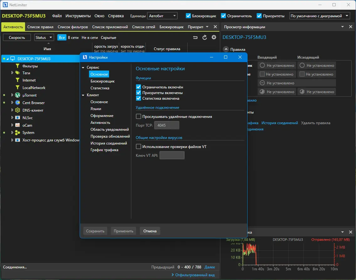 Работа с NetLimiter