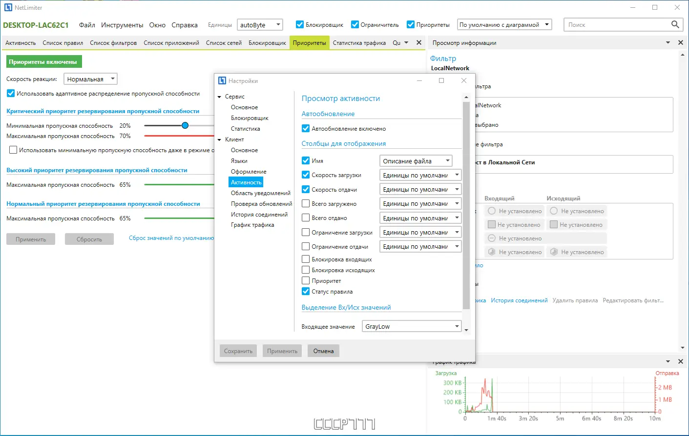 Программа помогает эффективно распределять сетевые ресурсы, предотвращая перегрузку канала маловажными процессами.