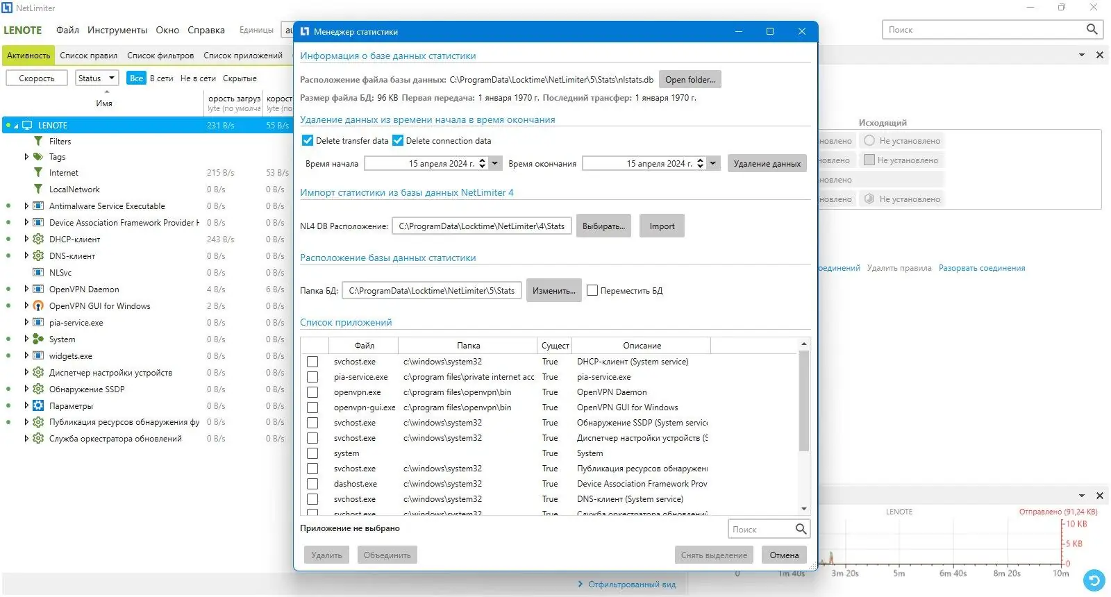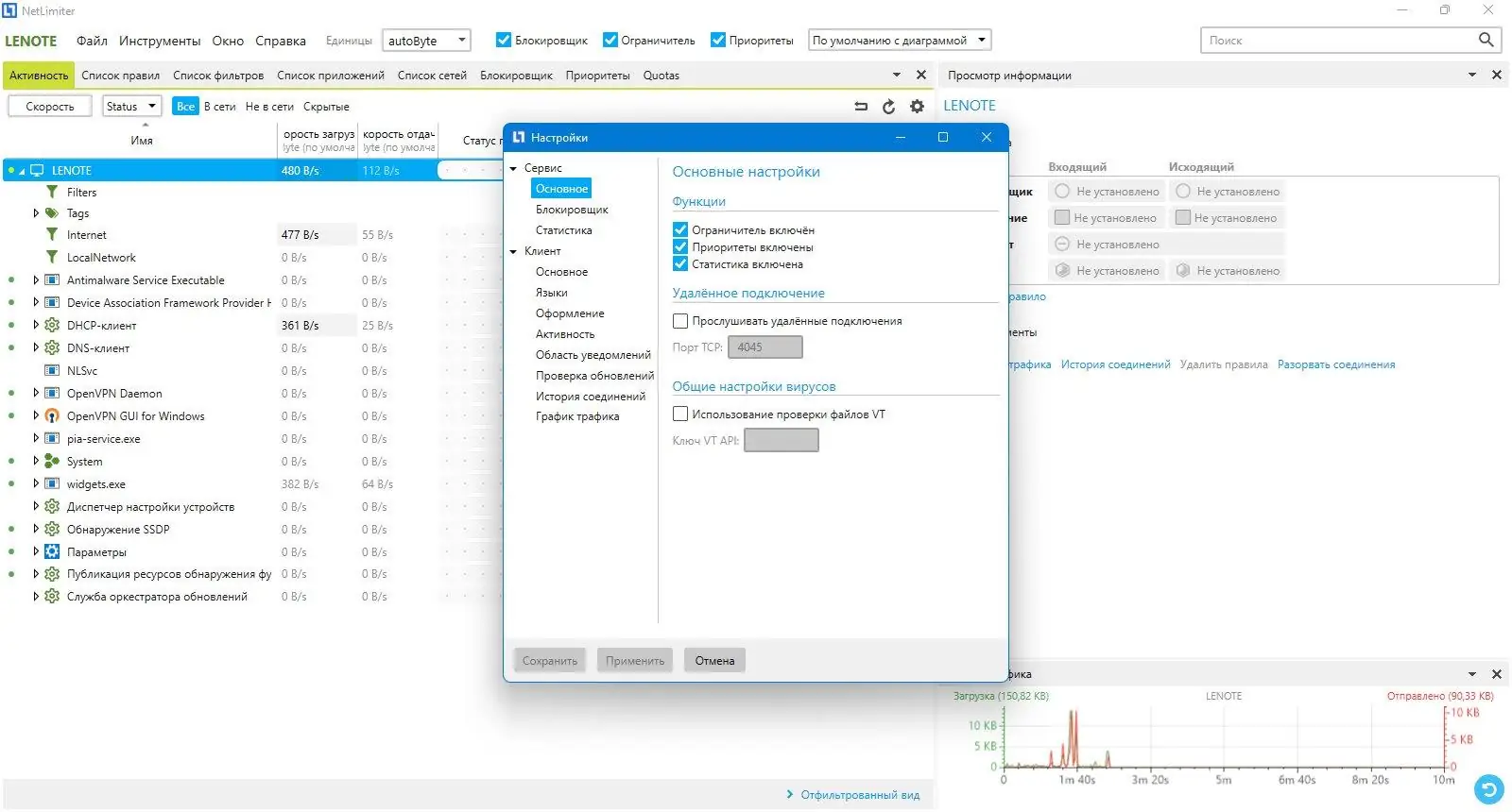Работа с NetLimiter