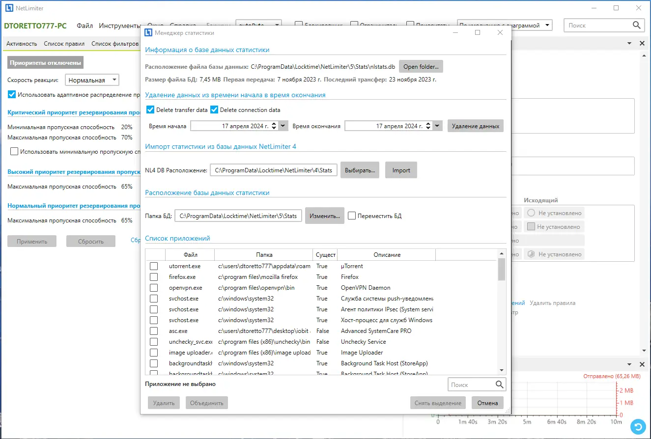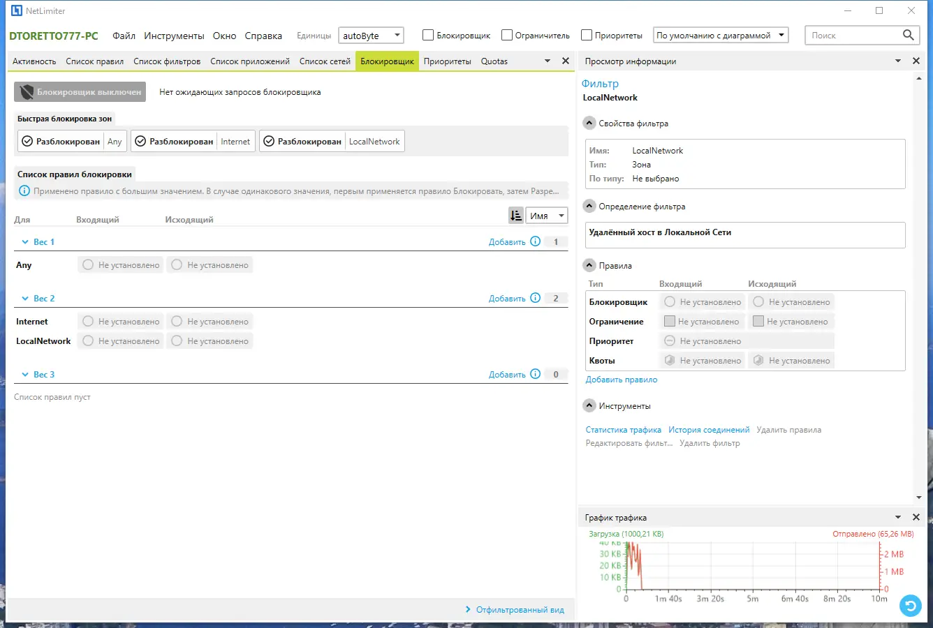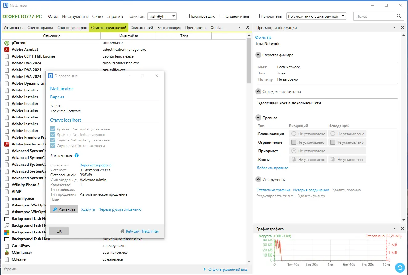NetLimiter — это инструмент для детального контроля сетевого трафика на персональном компьютере. Программа позволяет отслеживать активность каждого приложения в сети, устанавливать лимиты на скорость загрузки и отдачи, а также блокировать нежелательные соединения. Благодаря гибким настройкам, пользователь получает полный контроль над тем, как и какие приложения используют интернет.