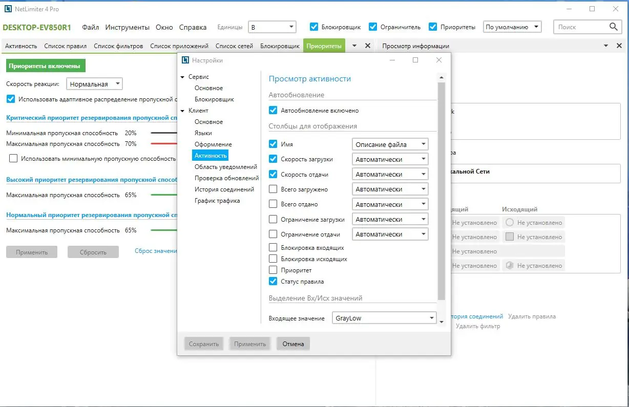 Программа позволяет не только ограничивать, но и приоритизировать трафик, выделяя больше скорости критически важным приложениям.