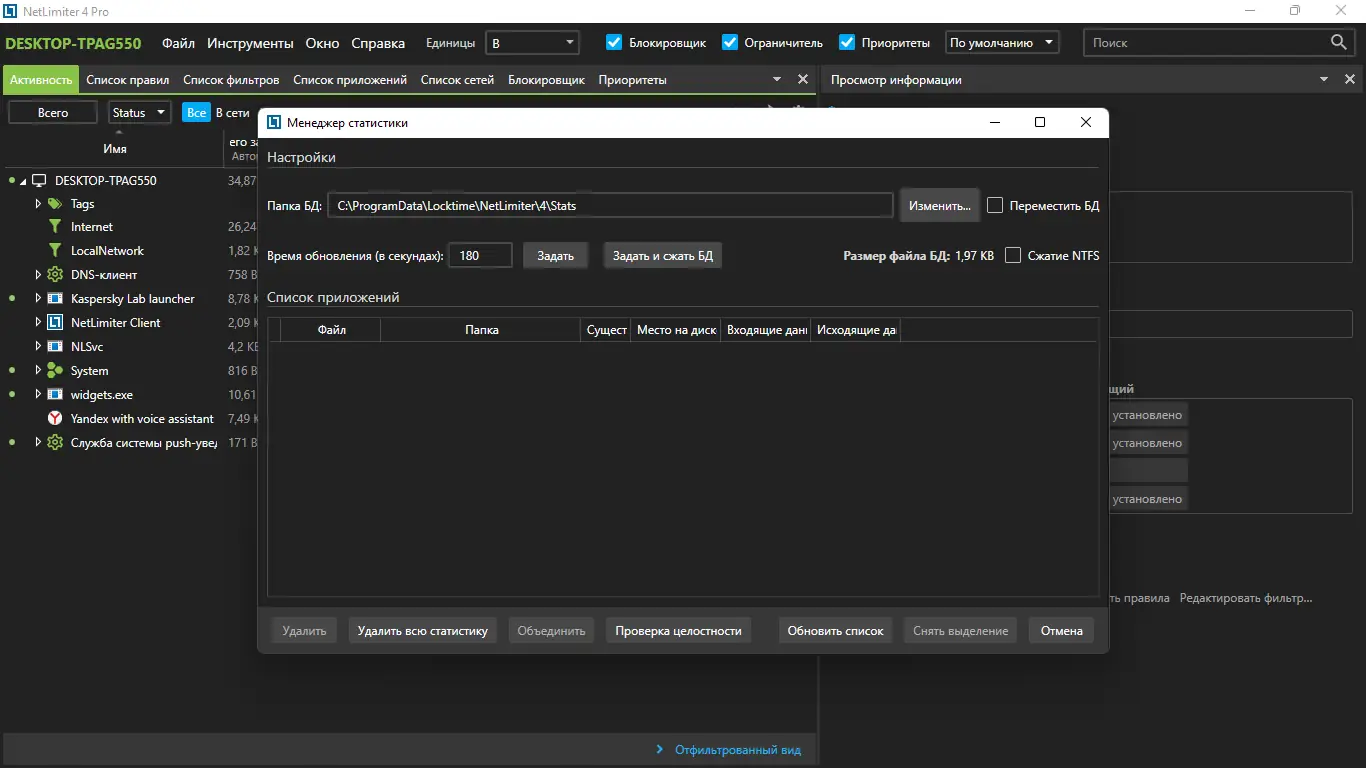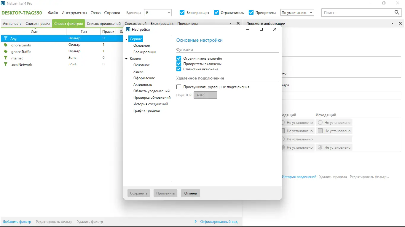 Работа с NetLimiter