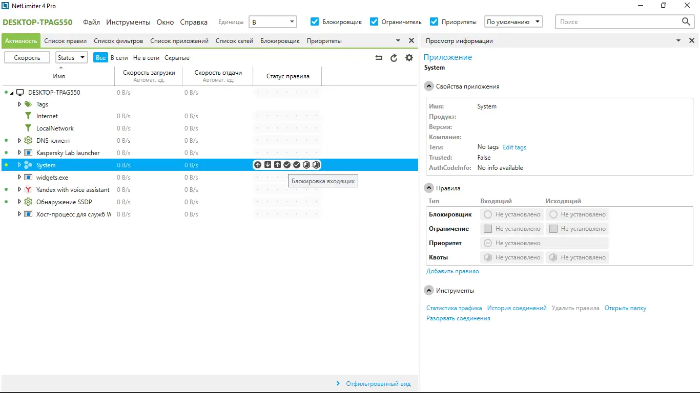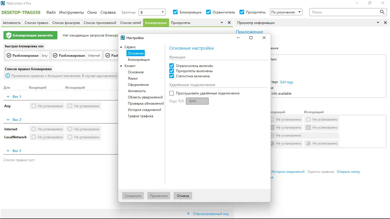 Работа с NetLimiter