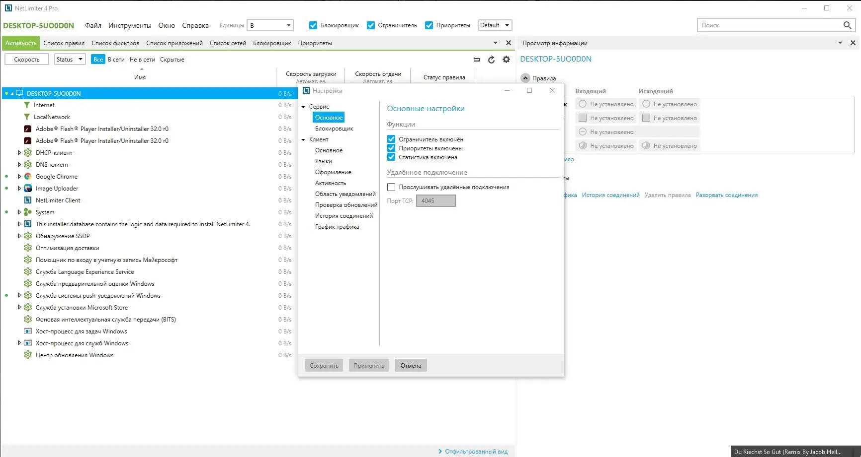 Работа с NetLimiter