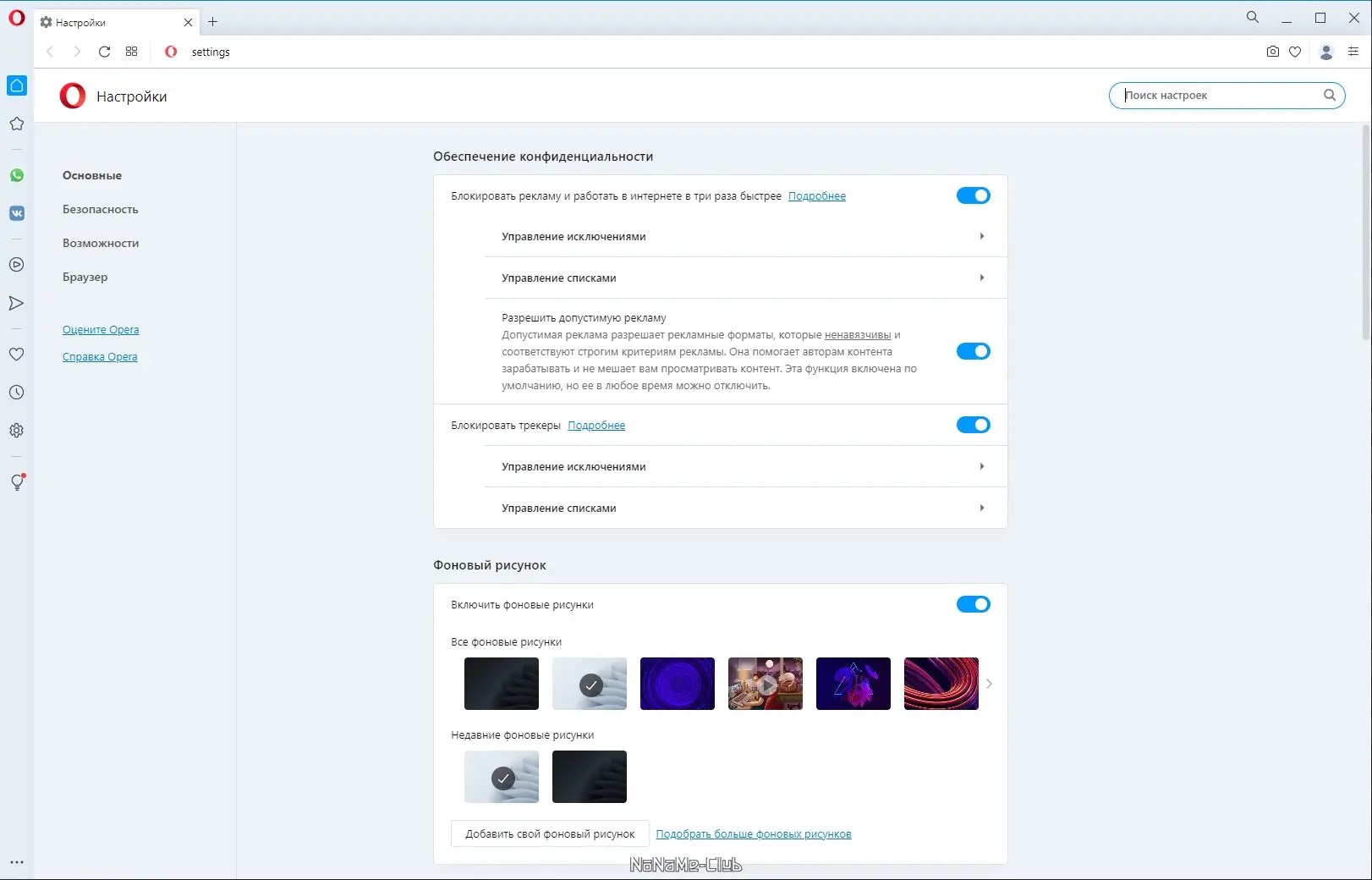 - Интерфейс поддерживает персонализацию: темы, расположение панелей, настройки приватности и поведения вкладок.