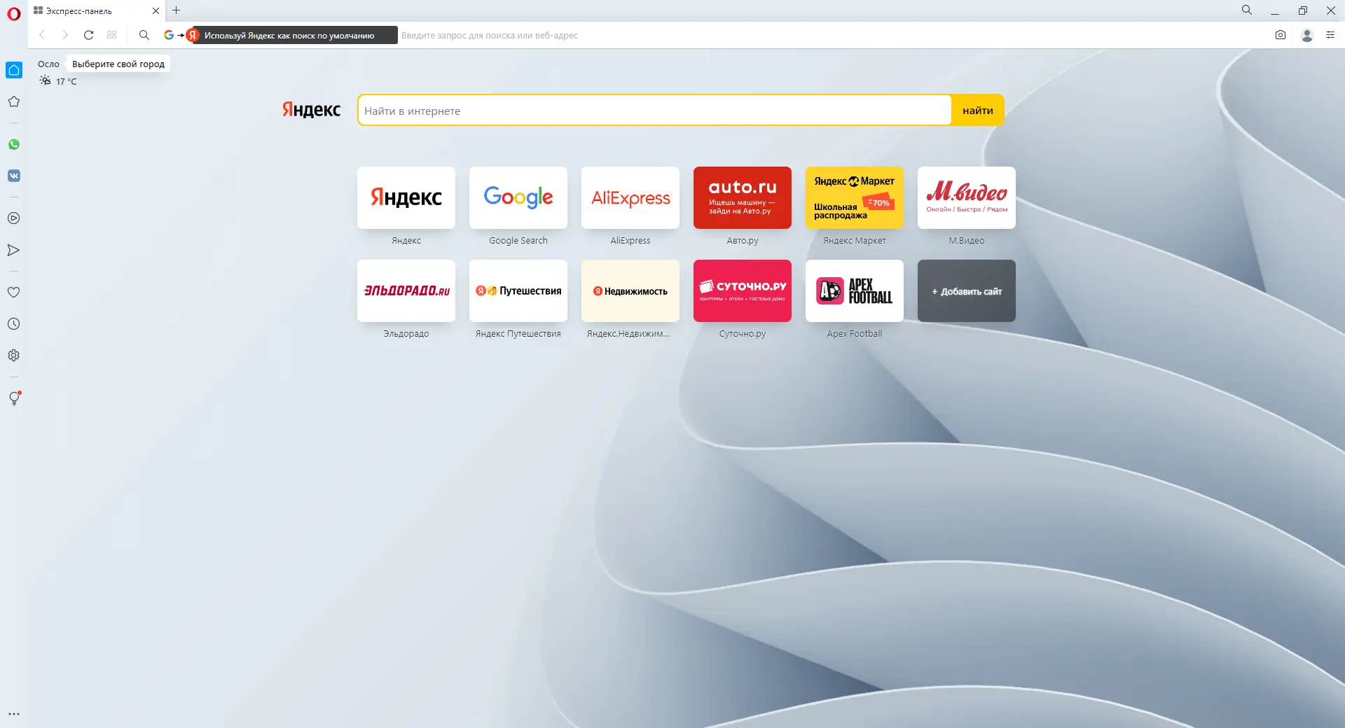 - Экспресс-панель адаптируется под поведение пользователя, отображая часто посещаемые ресурсы и позволяя быстро переходить к нужным сайтам.