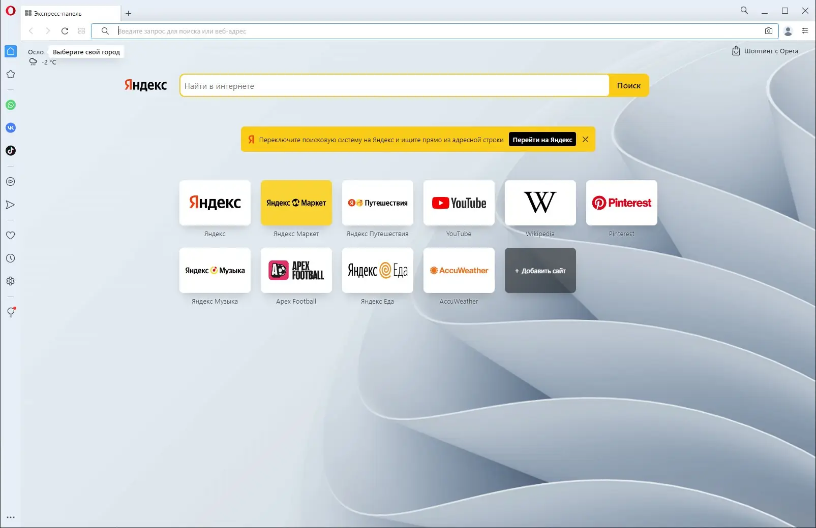 Использование Opera не требует специальных навыков. После запуска браузер предлагает настроить стартовую страницу, где можно активировать режим рекомендаций, настроить экспресс-панель и включить встроенный vpn для защиты трафика. Панель быстрого доступа расположена в левой части интерфейса, обеспечивая мгновенный переход к почте, мессенджерам и другим сервисам. Для управления вкладками доступен режим window, позволяющий группировать окна и переключаться между ними с помощью горячих клавиш. Все настройки легко доступны через боковое меню, а установка дополнительных расширений возможна через встроенный магазин, что расширяет функциональность при необходимости.