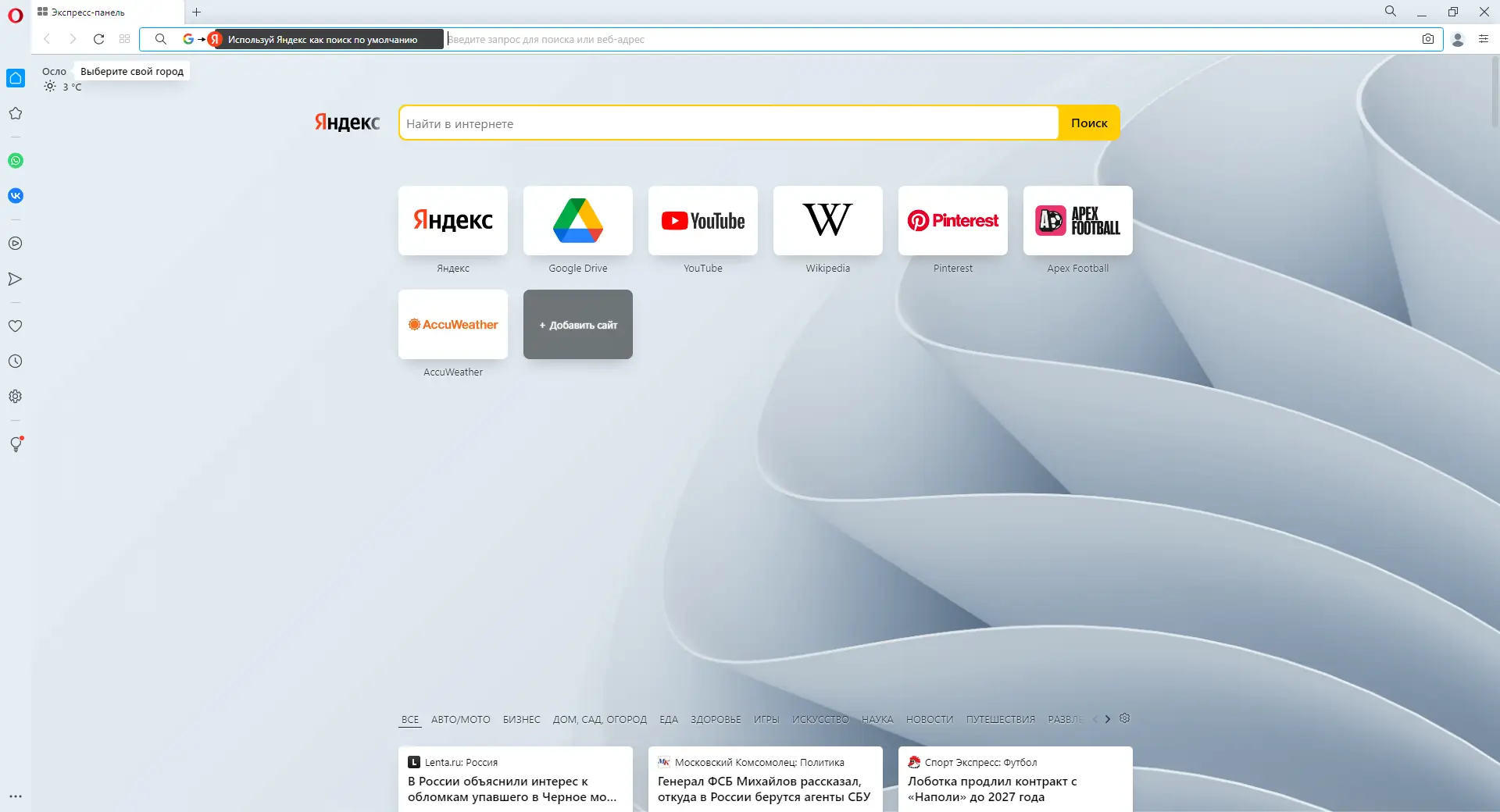 - Экспресс-панель помогает систематизировать часто посещаемые сайты