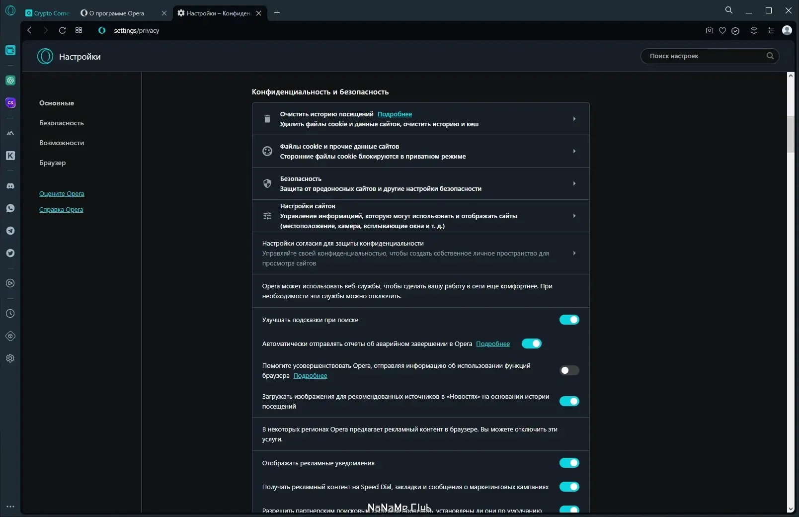 Работа с Opera Crypto Browser