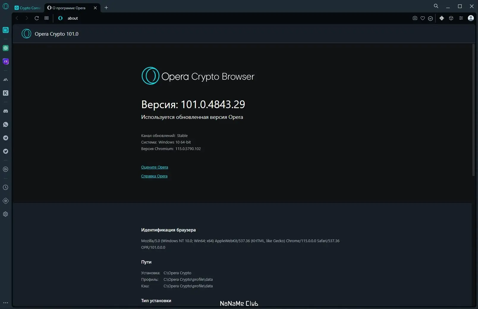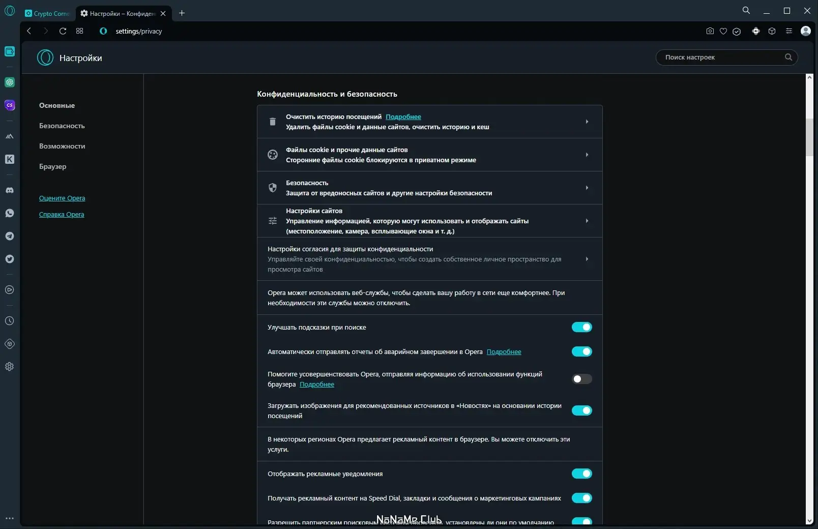 Работа с Opera Crypto Browser