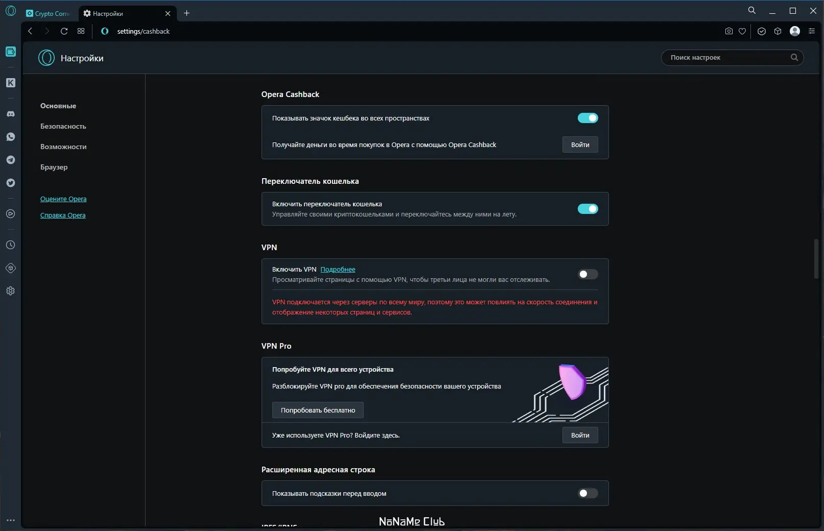 Работа с Opera Crypto Browser