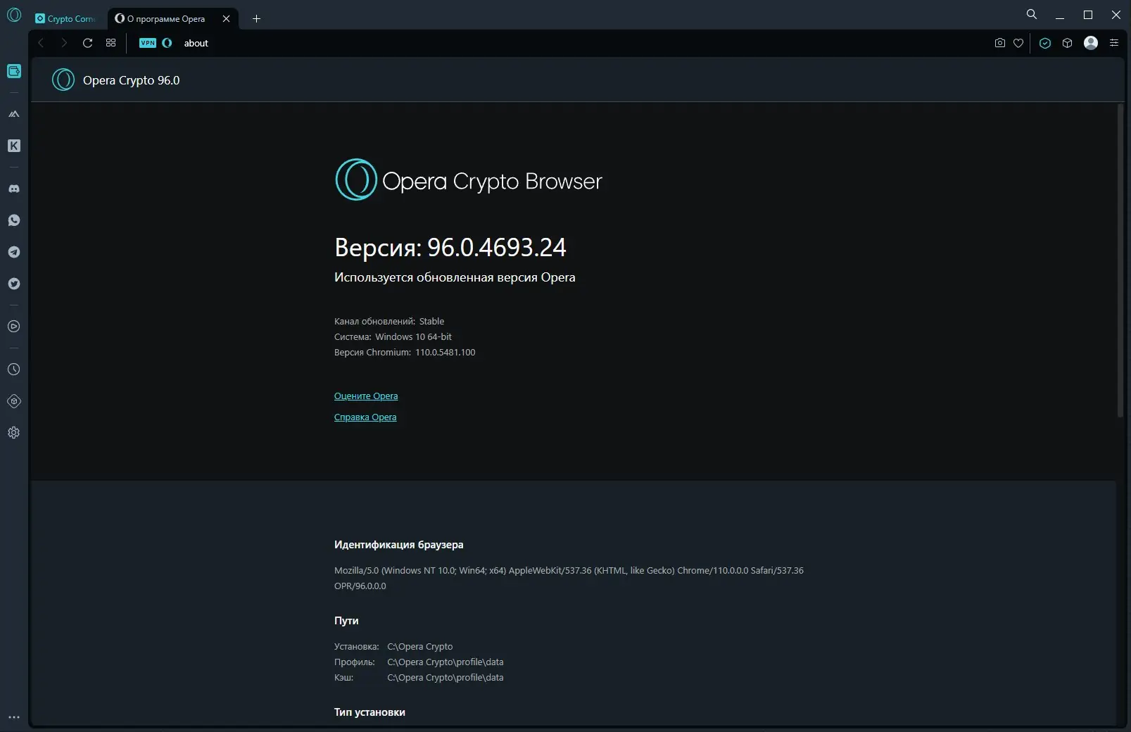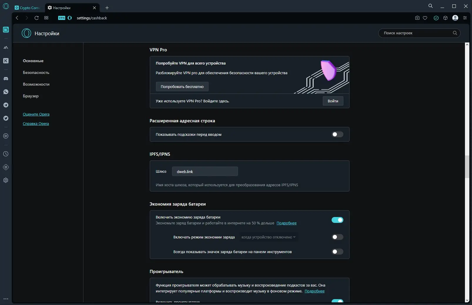Работа с Opera Crypto Browser