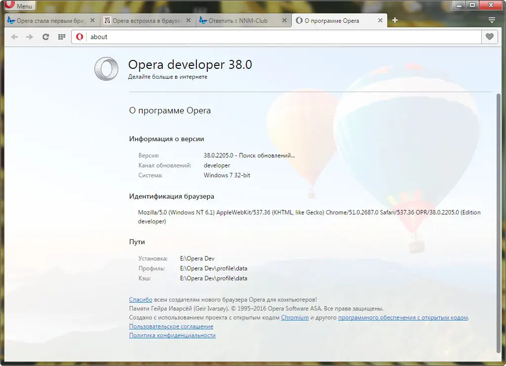Opera — один из немногих браузеров, который сочетает в себе инновационные технологии и продуманный интерфейс. Разработан на базе движка Chromium, что обеспечивает высокую совместимость с веб-приложениями и расширениями. Версия Opera Developer предназначена для тех, кто хочет первым оценить новые инструменты и функциональные улучшения, ещё до их официального релиза.