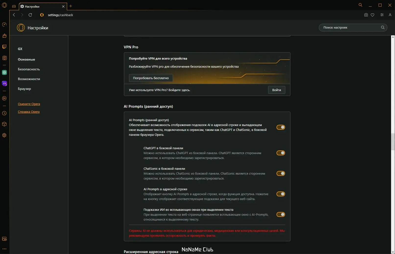 Работа с Opera GX