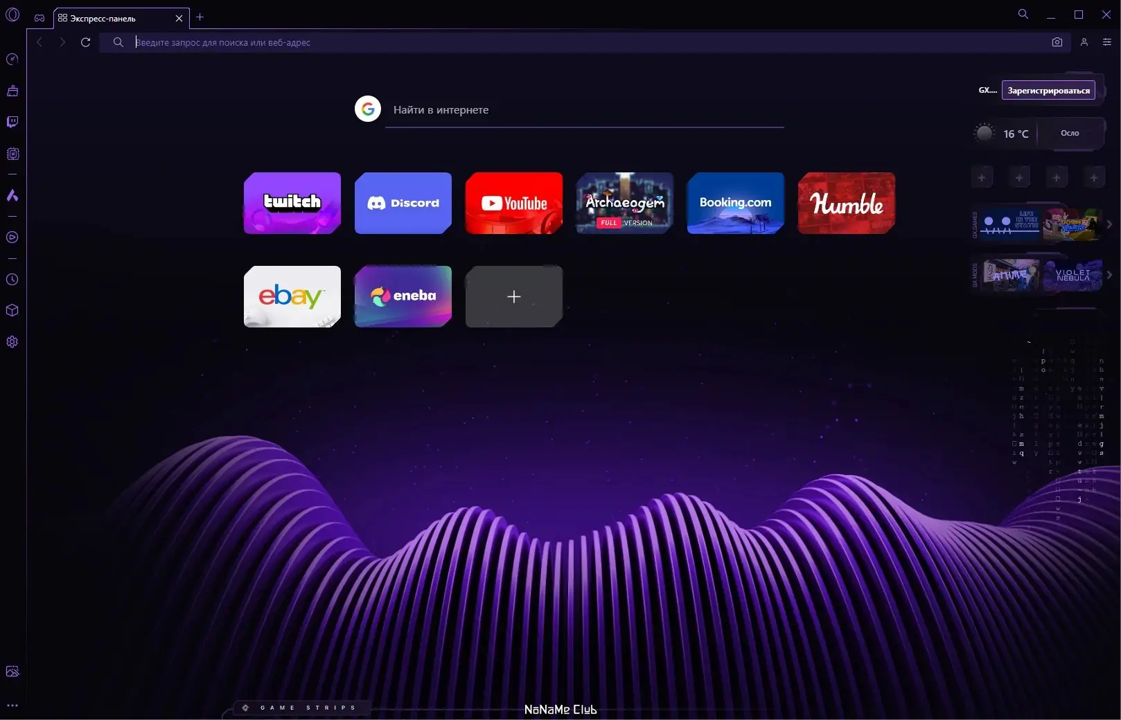 Opera GX — это специализированный браузер, разработанный для геймеров, сочетающий высокую производительность, стильный интерфейс и функции, оптимизированные для комфортного совмещения игр и веб-серфинга. Браузер предлагает контроль над ресурсами системы, встроенные сервисы и персонализацию, позволяя пользователям настроить рабочее окружение под свои нужды. С его помощью можно легко смотреть стримы, общаться в мессенджерах и одновременно играть, не теряя в скорости и стабильности.