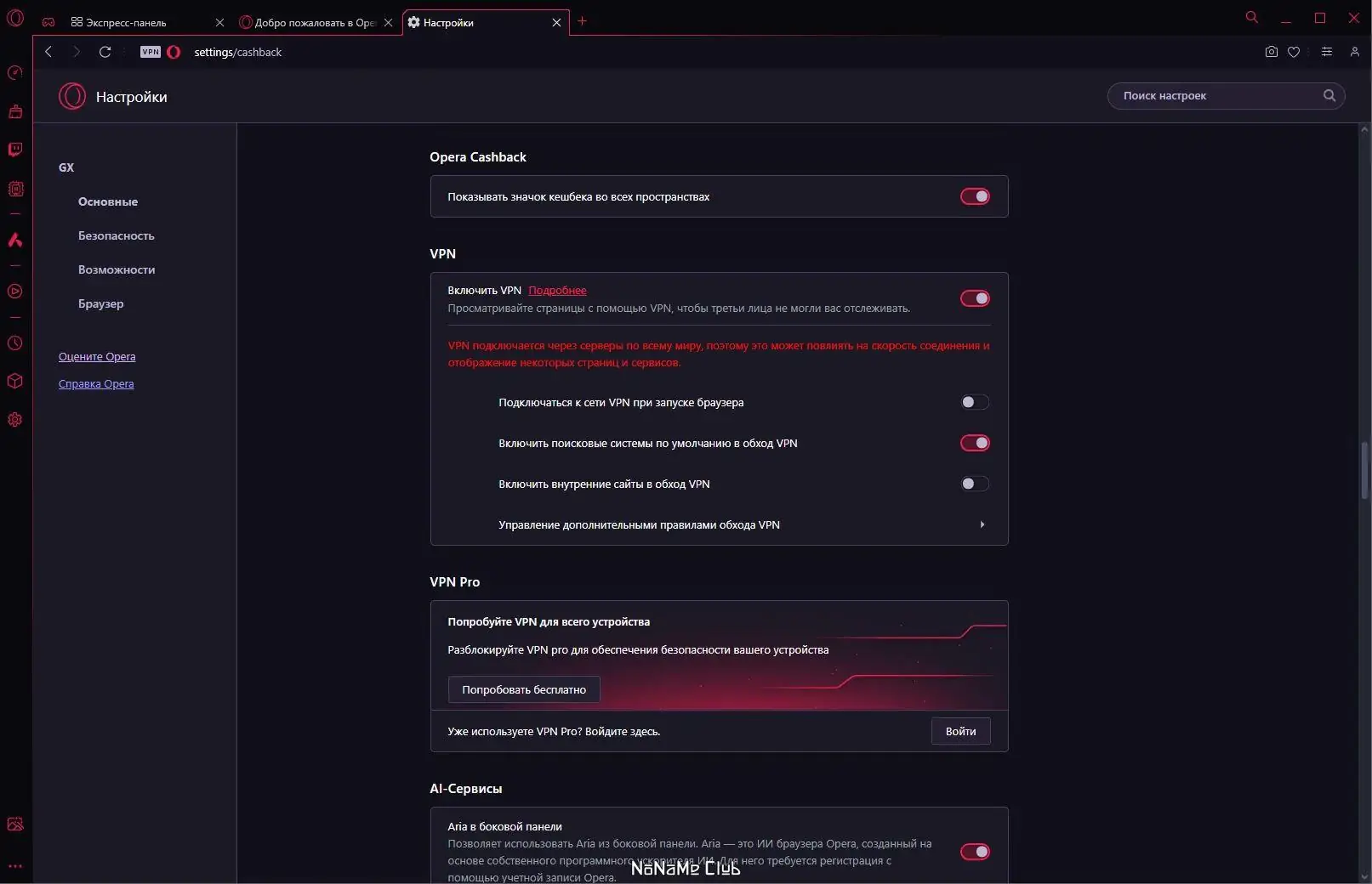 - Наличие встроенного бесплатного vpn, обеспечивающего безопасность и анонимность в сети.