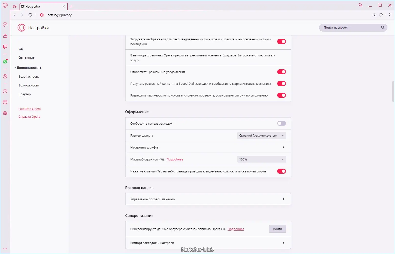 Работа с Opera GX