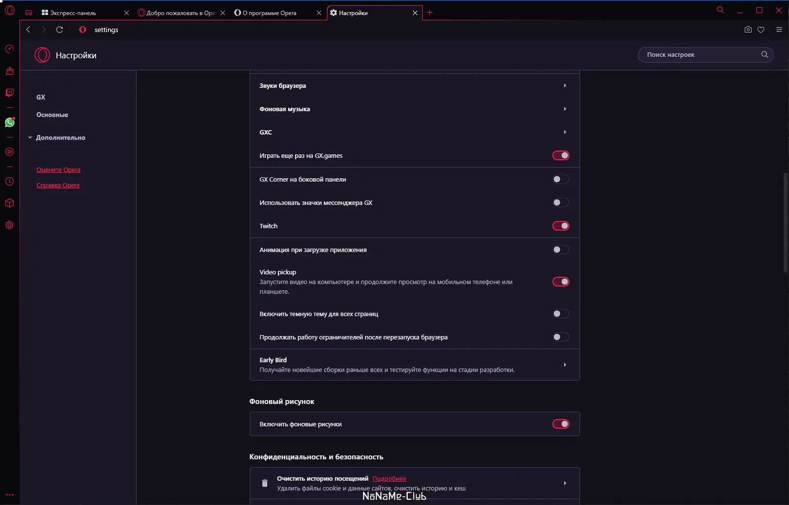 Работа с Opera GX