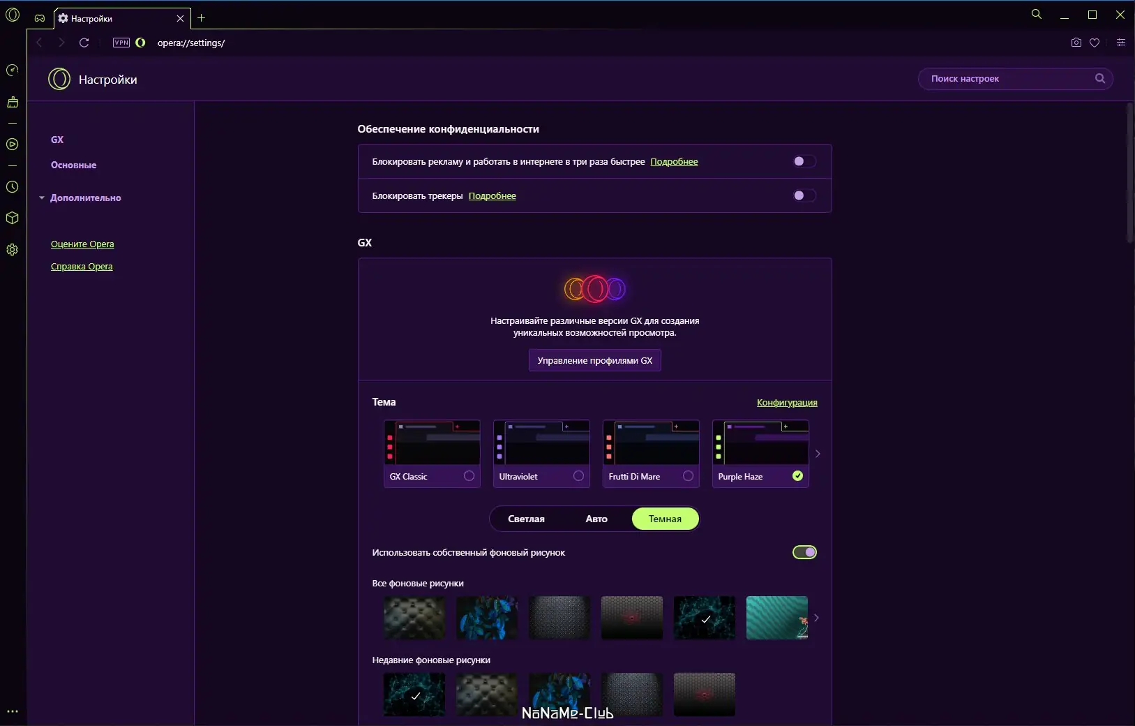 - Браузер включает GX Control для ограничения использования оперативной памяти и процессора.