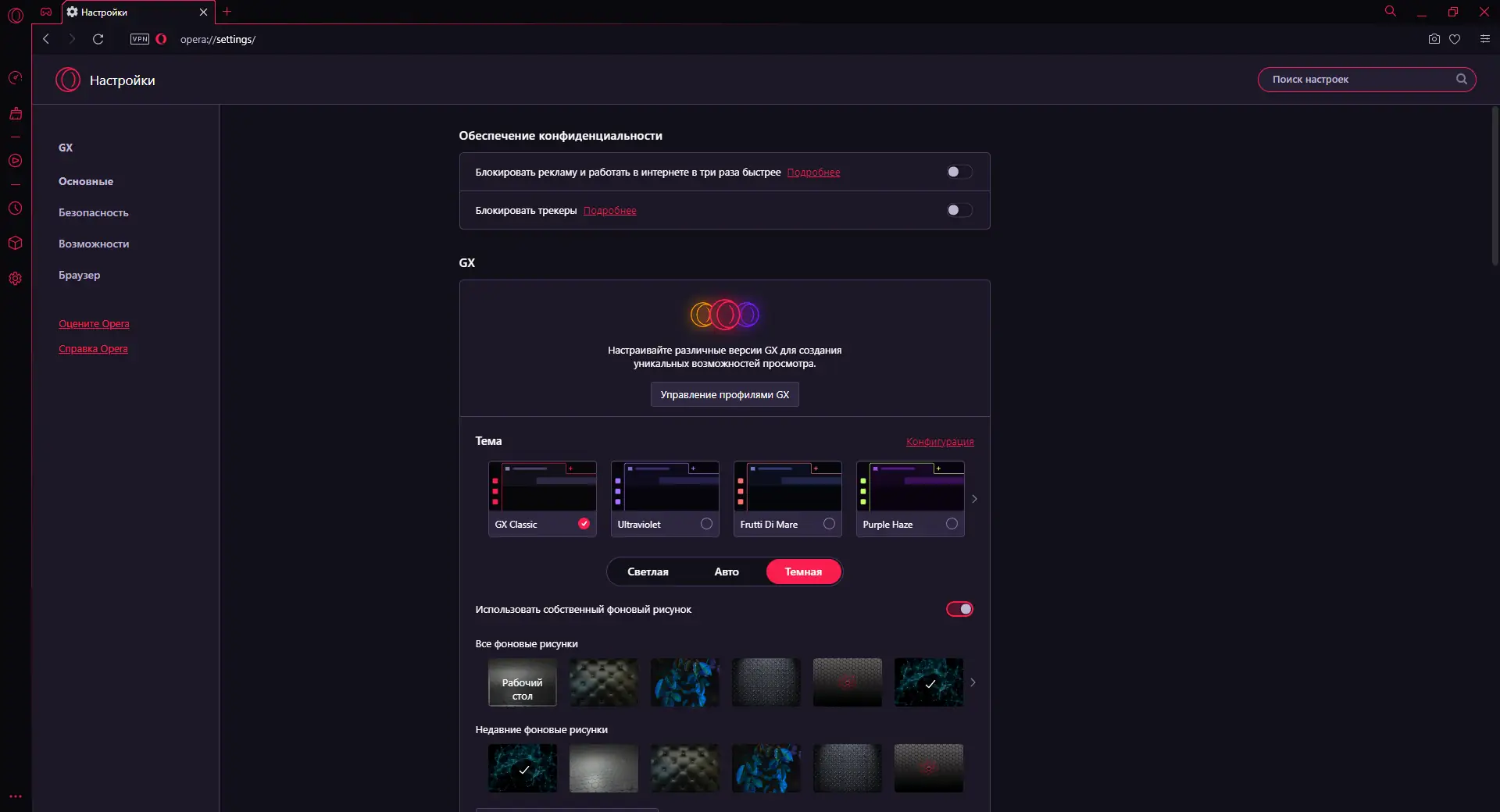 Opera GX — это модифицированная версия популярного веб-обозревателя Opera, созданная специально для гейминга. Программа сочетает в себе скорость, безопасность и функциональность, адаптированную под нужды пользователей, которые проводят много времени за играми и стримами. Браузер предлагает широкие возможности кастомизации интерфейса, включая выбор цветовой гаммы, эффектов и тем, что позволяет каждому пользователю создать свой уникальный стиль. Поддержка различных элементов оформления, таких как разделительные линии, границы кнопок и иконки, делает его визуально привлекательным и удобным в использовании. Ранее разработчики временно убрали возможность выбора светлой темы, что вызвало недовольство среди пользователей, но функция была возвращена, что подчеркивает внимание создателей к обратной связи.
