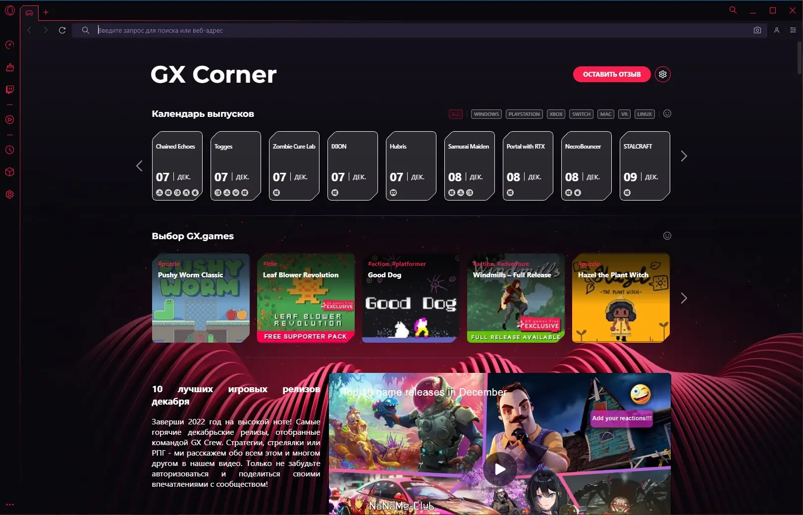 Opera GX — это не просто браузер, а полноценная платформа для геймеров, объединяющая общение, развлечения и оптимизацию системы.