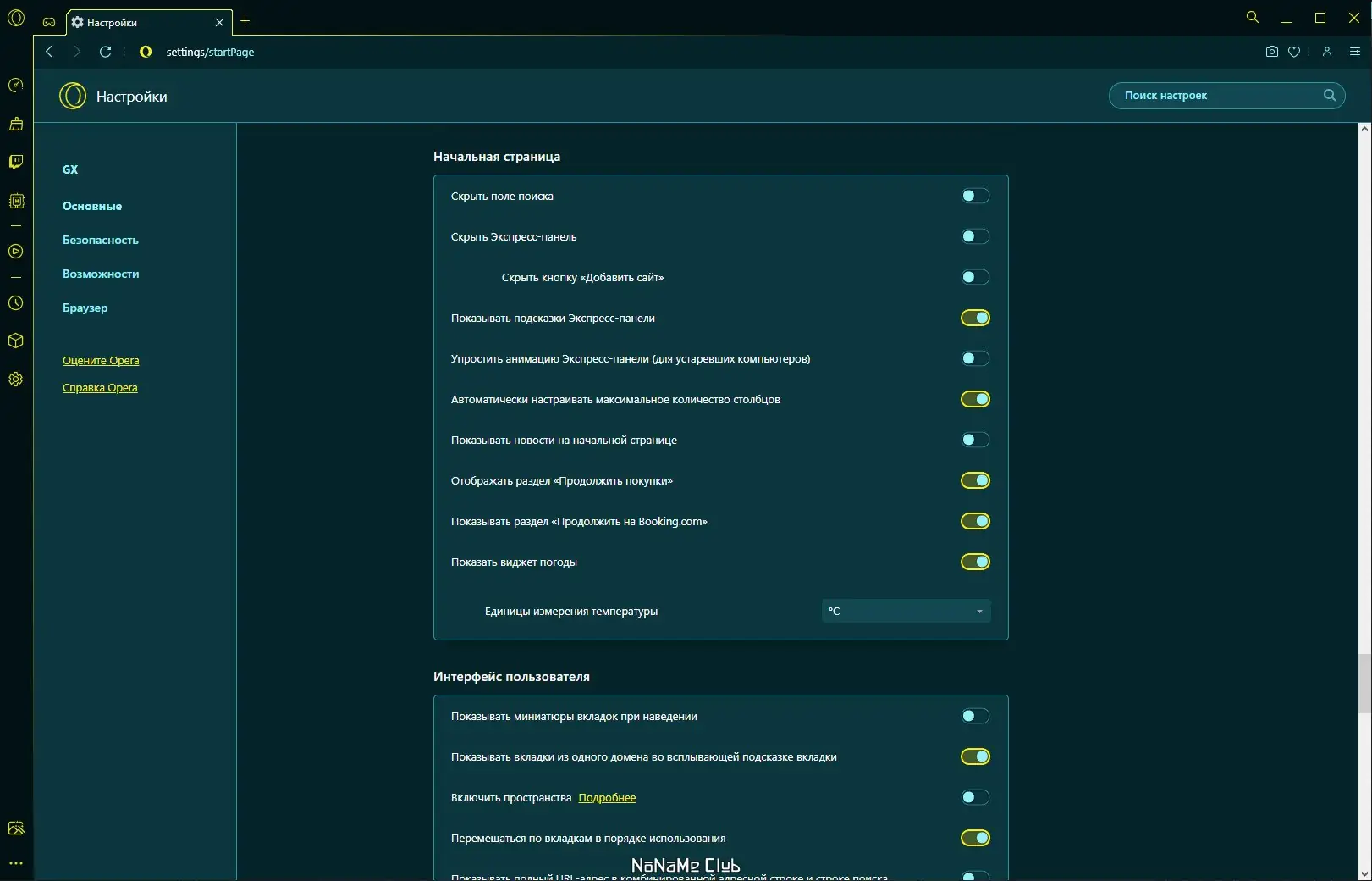 - Браузер предлагает широкие возможности кастомизации: выбор цветовой схемы, настройка иконок, границ элементов и прозрачности интерфейса.