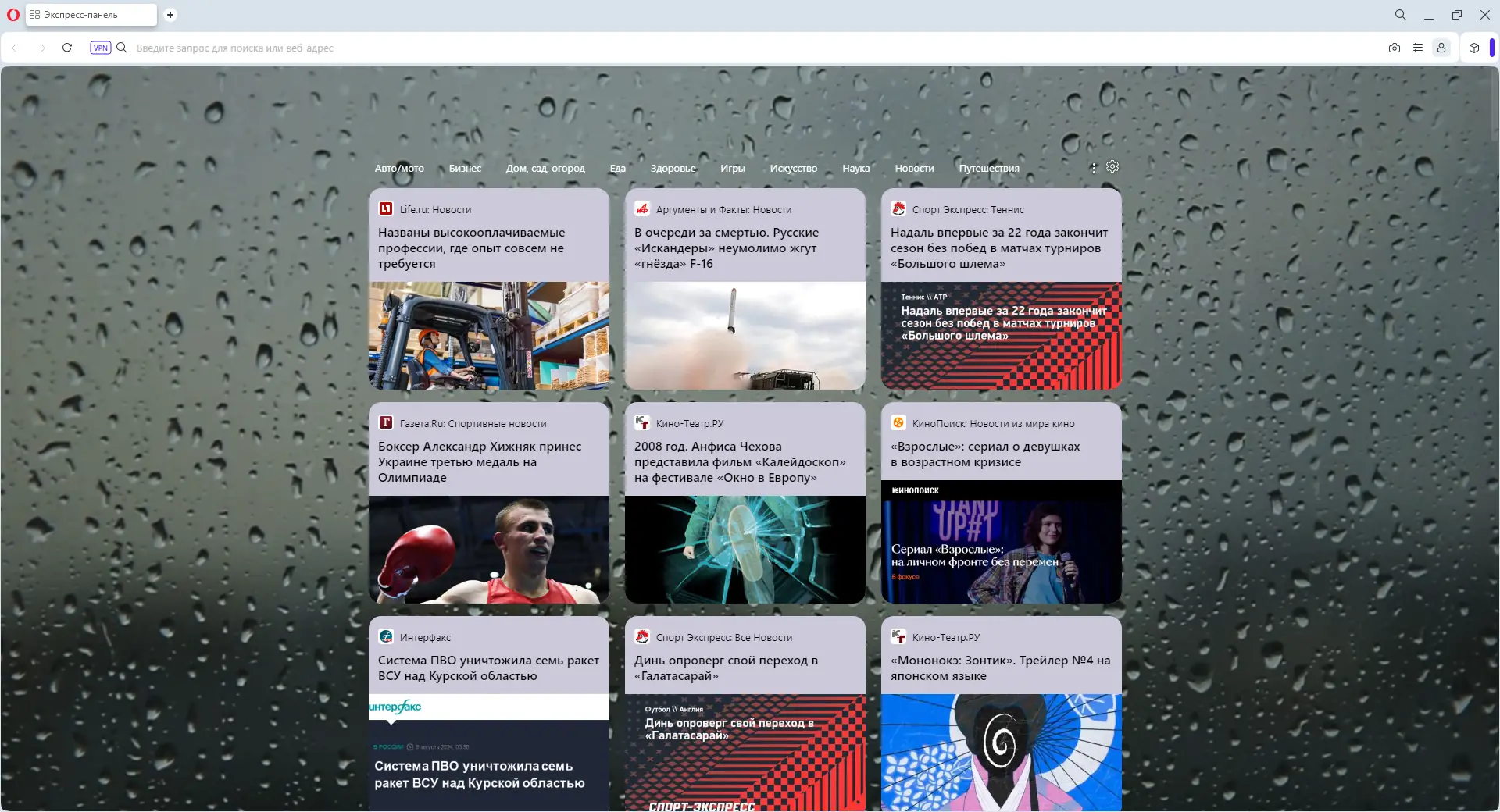 - Браузер предлагает встроенные рекомендации, отображающие популярные новости и развлечения из разных стран мира.