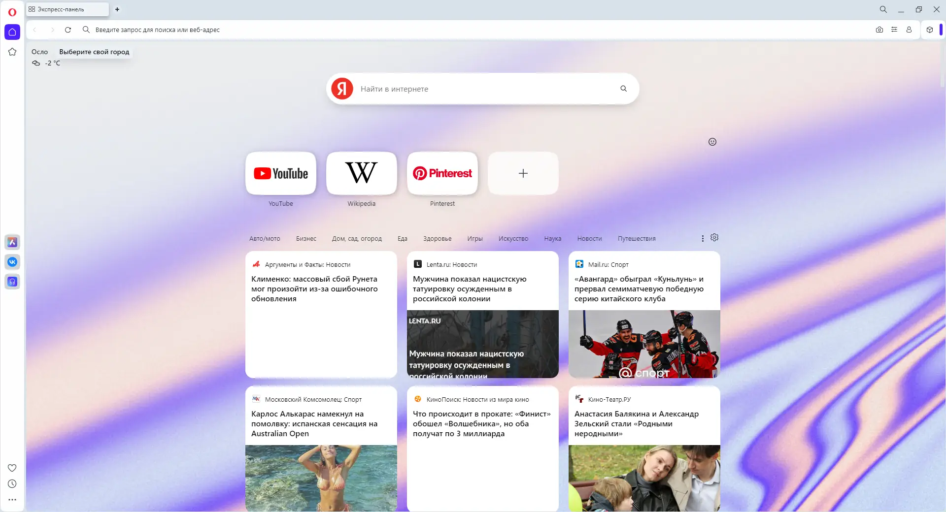 - Рекомендации на стартовой странице предлагают актуальные новости и развлекательные материалы
