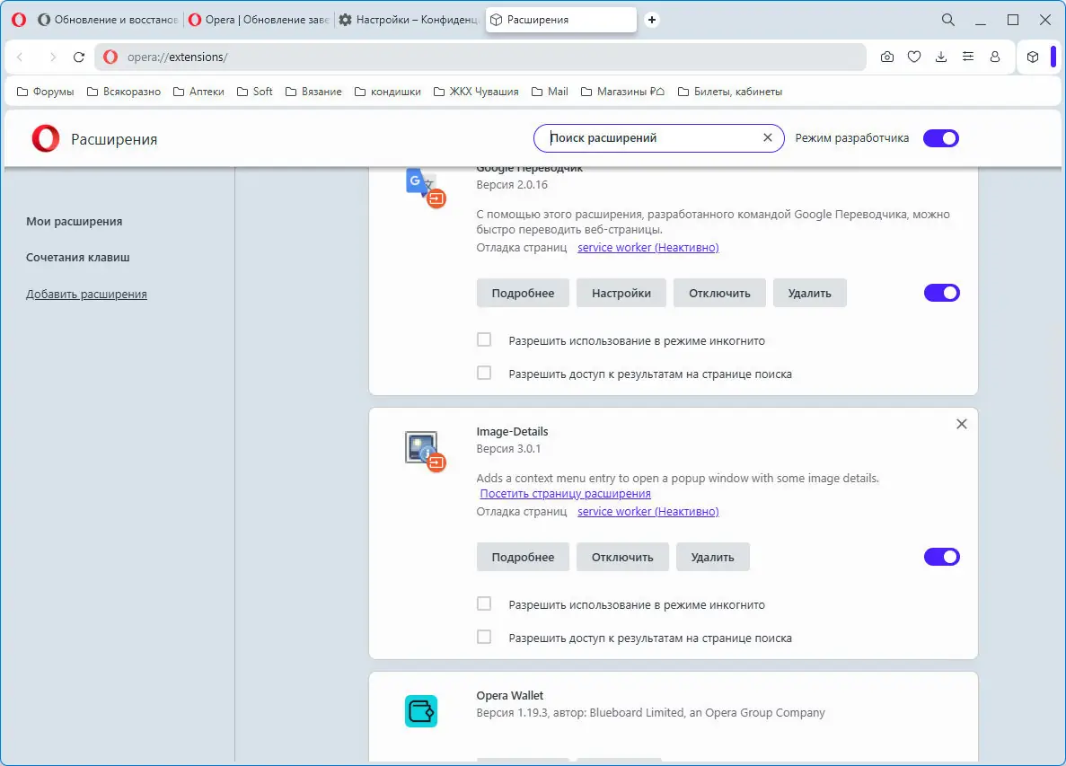 Работа с Opera