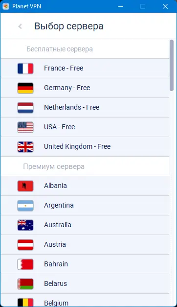 - Бесплатная версия предлагает выбор только из пяти стран, что может быть ограничением для пользователей, которым требуется доступ к более узкой географической локации.