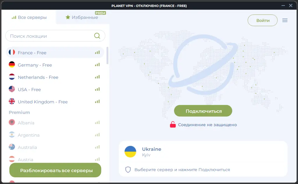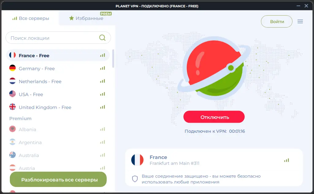 - Количество серверов в бесплатной версии ограничено пятью странами
