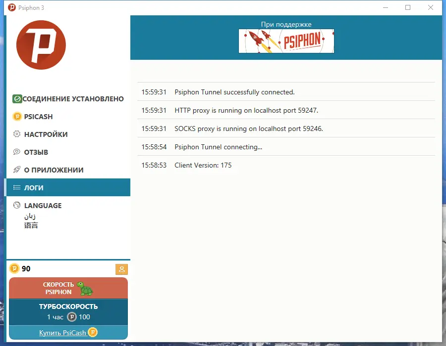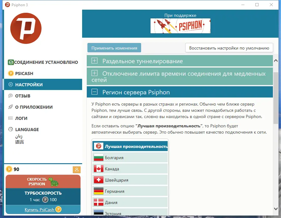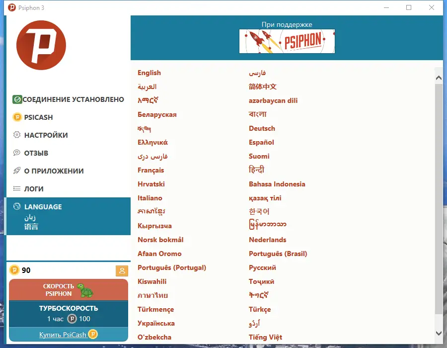 Работа с Psiphon