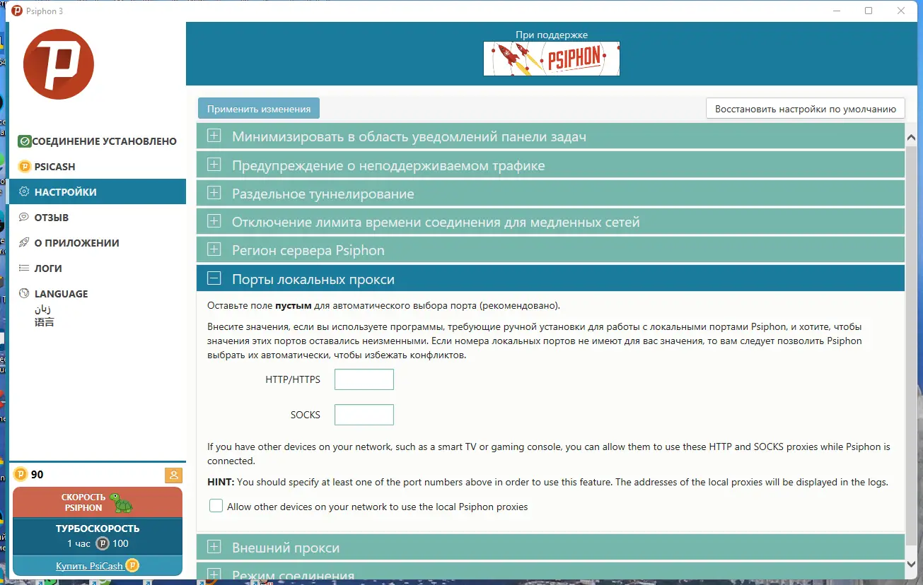 Работа с Psiphon