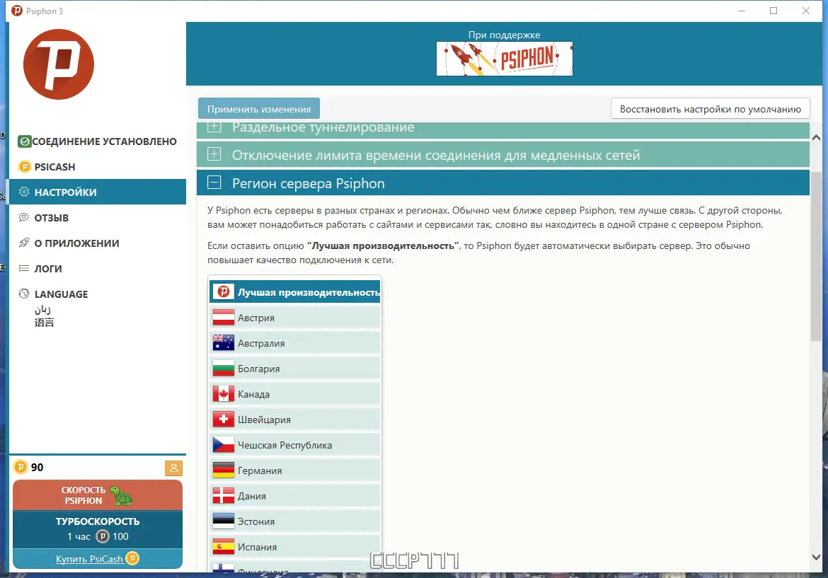 - Поддерживает функцию автонастройки и ручного выбора серверов.