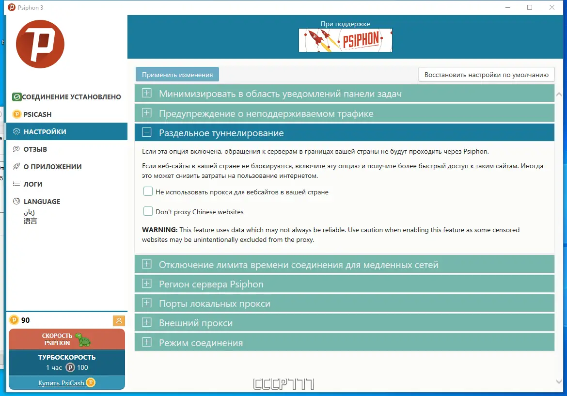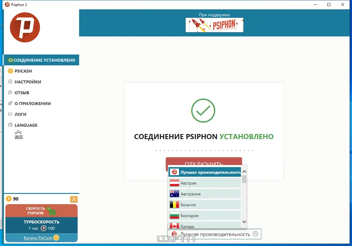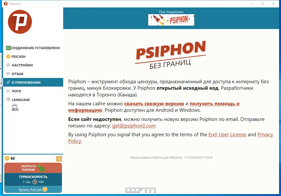 Psiphon не предназначен как полноценная система безопасности или инструмент для обеспечения конфиденциальности.