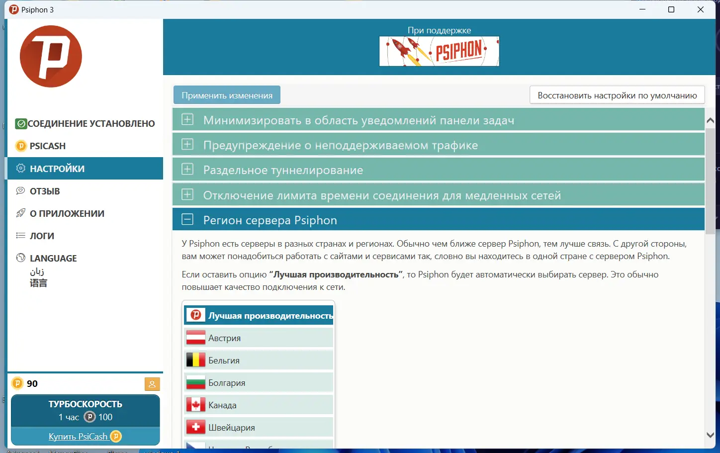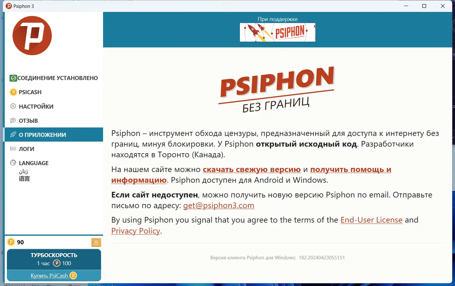 Программа доступна для бесплатного использования на официальном ресурсе. Версия pro не предлагается, так как все функции включены в базовую сборку. Пользователи могут скачать впн-клиент без регистрации, а портативная версия позволяет запускать Psiphon с флеш-накопителя. Чтобы вернуть исходный IP-адрес, достаточно закрыть приложение. Для тех, кто ищет vpn скачать бесплатно — это один из рабочих вариантов, хотя и с определёнными ограничениями по производительности.
