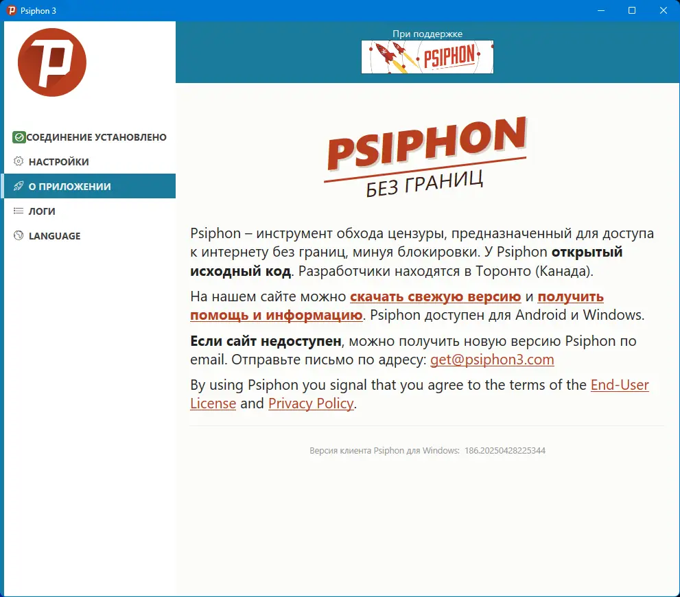Psiphon — это программное обеспечение для обхода интернет-ограничений, объединяющее технологии SSH, HTTP-прокси и впн в одном клиенте. Оно позволяет получать доступ к ресурсам, заблокированным на уровне провайдера или государства, автоматически подключаясь к доступным серверам. Программа подходит для пользователей, сталкивающихся с региональными блокировками, но не обеспечивает высокий уровень анонимности. Это решение больше ориентировано на работоспособность, чем на защиту конфиденциальности. Тем не менее, базовое шифрование данных делает использование более безопасным, чем прямое подключение без посредников.
