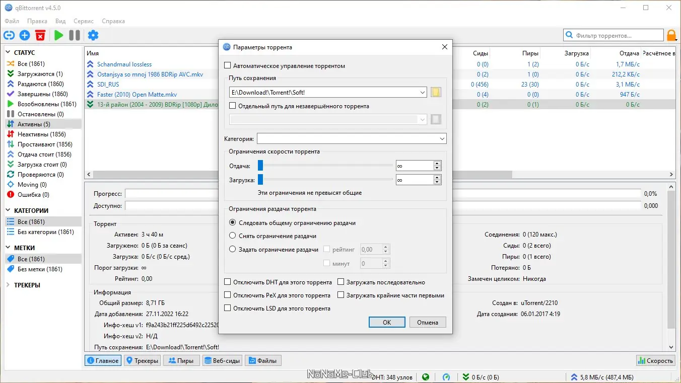 - Высокая степень кастомизации: темы, языки интерфейса, метки для торрентов и гибкие настройки сети.