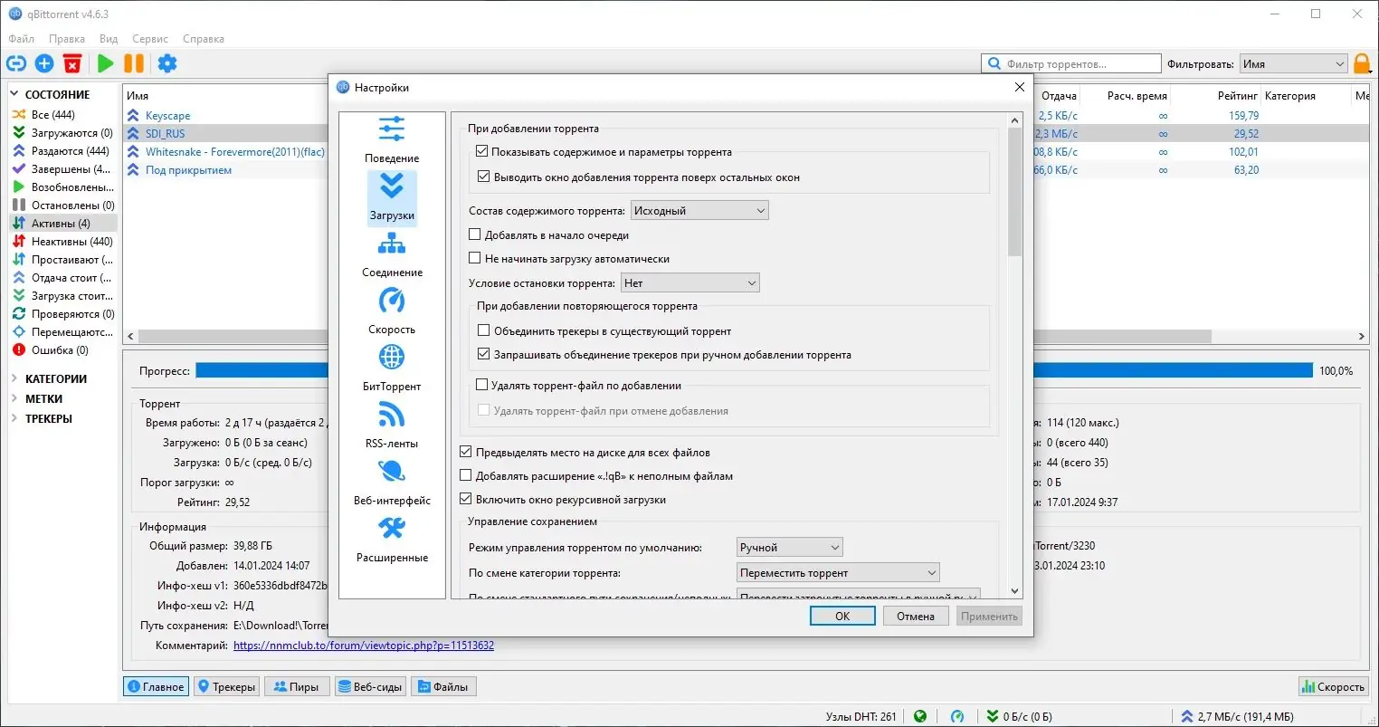 Работа с qBittorrent